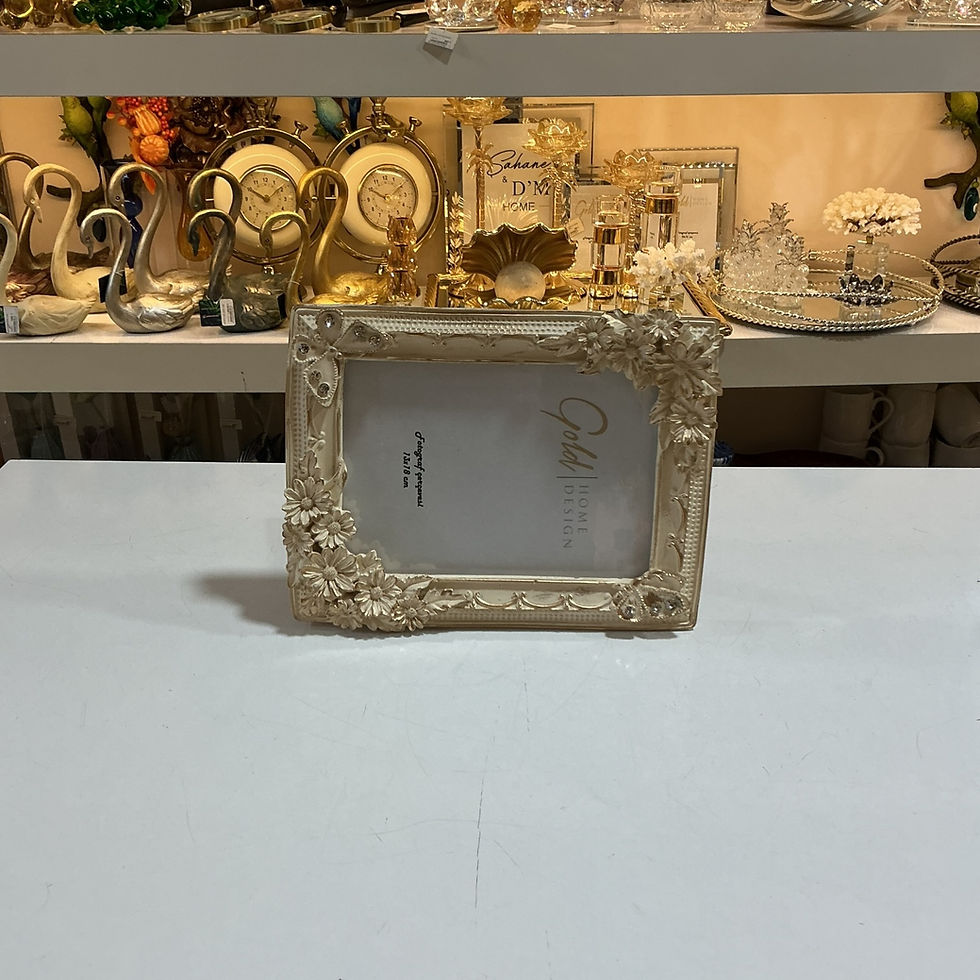 Kelebek & Papatya Detaylı Dekoratif Fotoğraf Çerçevesi 13x18 Gold Renk